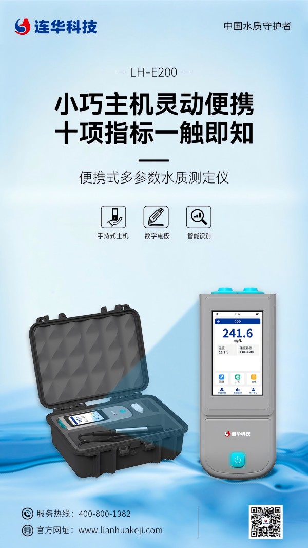 在環(huán)保意識(shí)日益增強(qiáng)的今天,水質(zhì)監(jiān)測(cè)成為了各行各業(yè)不可或缺的重要環(huán)節(jié)。從地表水到工業(yè)廢水,從水產(chǎn)養(yǎng)殖到食品飲料,水質(zhì)的安全與純凈直接關(guān)系到人們的健康與環(huán)境的可持續(xù)發(fā)展。近日,連華科技LH-E200的便攜式多參數(shù)水質(zhì)測(cè)定儀的發(fā)布,以其強(qiáng)大的功能和便捷的操作,為水質(zhì)監(jiān)測(cè)領(lǐng)域帶來(lái)了全新的解決方案。
