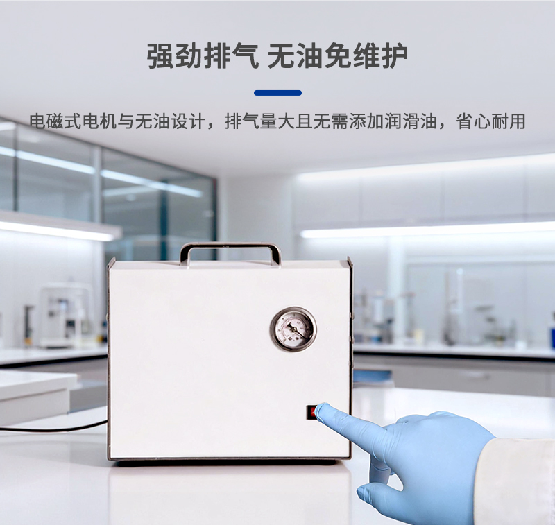 8、真空泵采用電磁式電機(jī),活塞直線往復(fù)運(yùn)動(dòng)產(chǎn)生壓縮氣體,排氣量大;