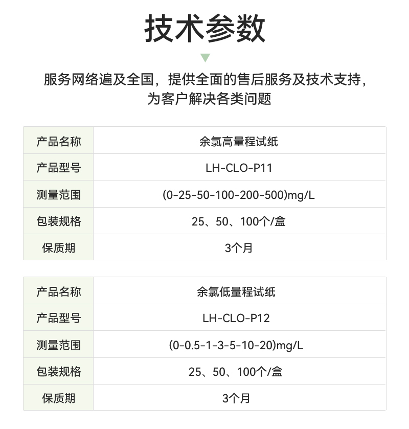 試劑名稱:余氯試紙(高量程)