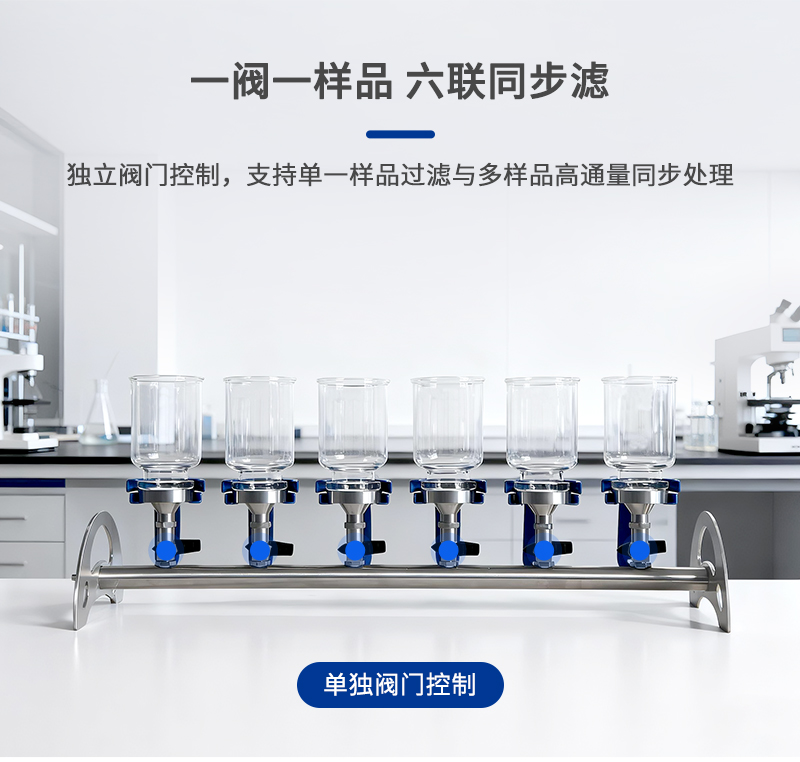 3、每個(gè)樣品配單獨(dú)閥門控制,可單獨(dú)過濾一個(gè)樣品,亦可同時(shí)過濾多個(gè)樣品;